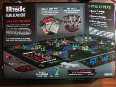 Risk: Metal Gear Solid adds some twists to the classic game of Risk with a theme based on the Metal Gear Solid video game series. It takes place on the standard Risk world map, but also includes the territory of Outer Haven which may be moved around the map to attack other territories. Additionally, nuclea...