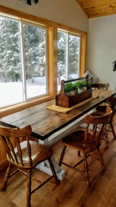 We build these beautiful rustic farmhouse tables in our workshop in The Villages. 5 ft longtable...$398 6 ft. long table...$448 7 ft. long table...548 8 ft long table...$648 We can build them to the length, width, height you need. You can even pick out the stain and paint colors of your choice. De...
