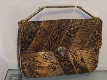 ‼️ULTRA RARE~ VTG DESIGNER FIND‼️ REDUCED TO $41.00 EXOTIC SKIN convertible HANDBAG CLUTCH / SHOULDER BAG XCLT VINTAGE condition **BAGS by V A R O N** ***UNIQUE BRASS hinged HANDLE ***ORNATE GOLD TONE METAL shoulder CHAIN ***EZ wipe ...