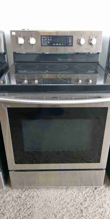 Stainless steel electric range.  Features four smoothtop elements and a spacious oven. Convection oven. Includes oven racks.  Used, but in good condition. Can be tested prior to purchase.