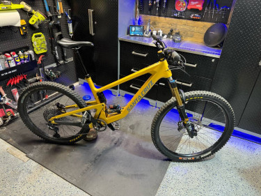 2022 frame custom Good condition frame (scratches here and there see photo) XL Frame Full suspension Santa Cruz Carbon Handlebar 780mm wide Sram RSC Hydraulic disc brakes 12 Sram speed Derailleur and shifter (Not AXS) 1x12 Sram Descendant Cranks DUB Cane creek headset/dropset Fox 36 Kashima Coating ...