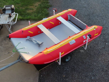 Saturn 11' Inflatable Sport Catamaran Boat MC330 https://www.boatstogo.com/inflatable-catamaran-mc330.asp Color Red and Yellow Boat is in excellent condition. I've only used it one time, for less than an hour. I'm too old and have too many boats / projects and haven't used the boat enough. Basic ...