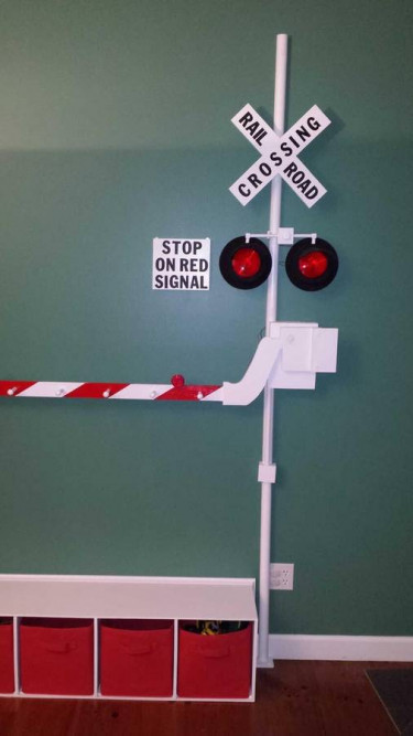 This would be perfect for a child's room, daycare, or even an adult train / railroad buff. This is a hand-made railroad crossing gate. It was made for our children's playroom, which they have outgrown. Features: * It is entirely made out of wood * Made to scale. * The arm has nine pegs for hanging th...