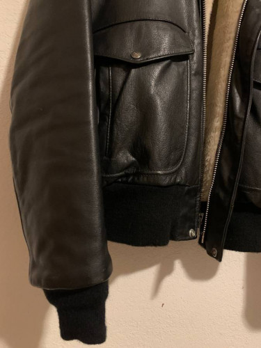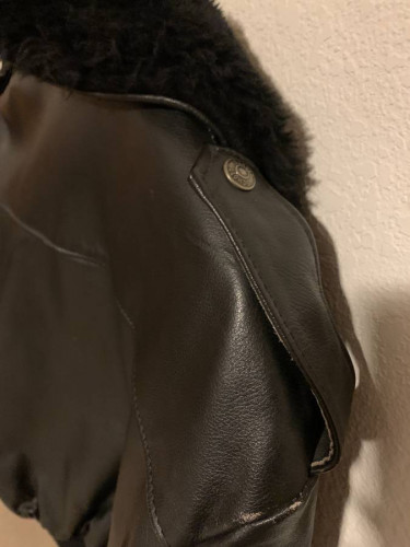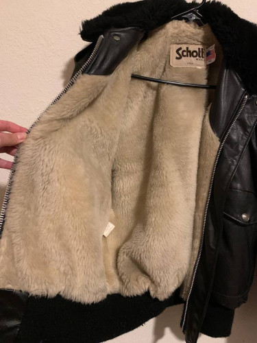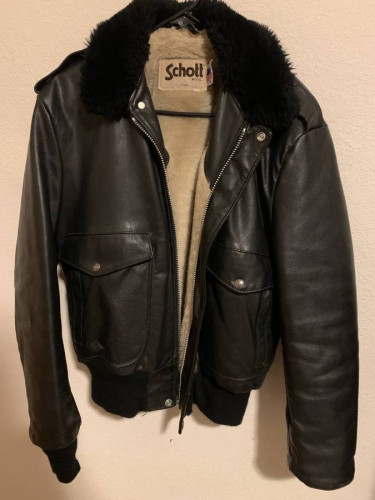 Schott Black Leather Flight Bomber Jacket Sherpa Lined Fur Collar Size 42 Made in USA • Size 42 Medium • Excellent like-new condition • No rips, tears, stains • Pet and Smoke-free • Made in USA • Top Quality Naked Leather • Bi-Swing Back and Underarm Footballs for Movement • Polytwill Lining & Z...