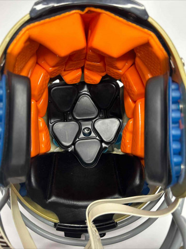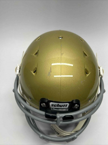 This SCHUTT Youth Medium Recruit Hybrid Football Helmet is a great find for any football fan. The helmet comes in a unique gold color with a gray mask and chin guard. It's perfect for any young player looking for a high-quality helmet to help them stay safe on the field. The helmet is designed for football an...