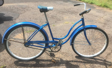 Pretty nice old Women's Girls Schwinn bicycle. Made in Chicago, Illinois. Unsure of exact year but looks to me like mid 1960s. Rear tire is flat at the moment. Appears to be 100% original including seat, grips and pedals. Single speed with old school coaster brake. $100.00 Cash Only Call or Text 7o...