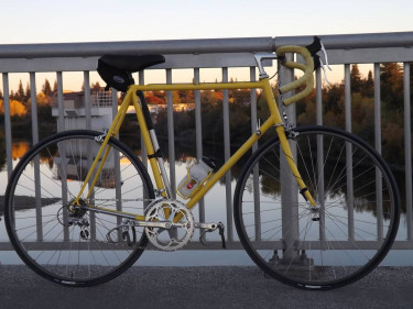 This is a Waterford made frame, from the 1980's. It's equipped with full Dura Ace (indexed shifting). The pictures should tell you what you need to know, but if you have any questions, feel free to email. This is the original paint, in excellent condition. I'm not selling the bags or the frame pump you see...