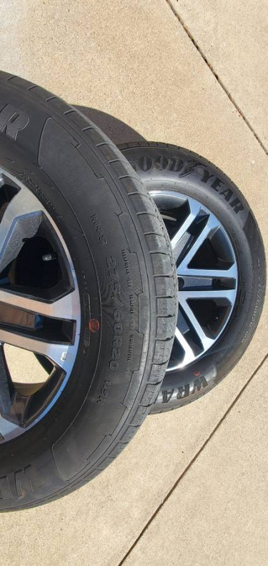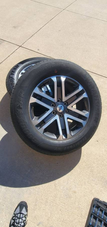 Set of four (4) FORD F150 factory OEM 20 inch wheels (that still have stickers on them), 20 inch tires with sensors and lugs with lock. Goodyear Wrangler Territory HT 275/60R20 . Wheels are rash free and tires have never been plugged. They have less than 4000 miles on them. $1000.00 for the set. Nothing is ...