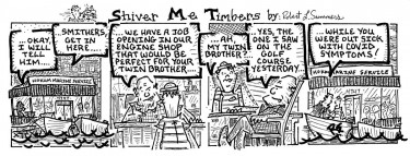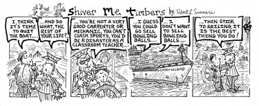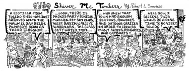 This is a large bound collection of the comic strip, "Shiver Me Timbers" by Robert L. Summers. Sailing and life along the shore are the themes of these four panel cartoons. First featured in the Put-In-Bay Gazette (1998) these cartoons have appeared in numerous publications most recently Oside News, Marine ...