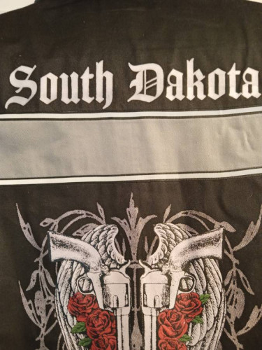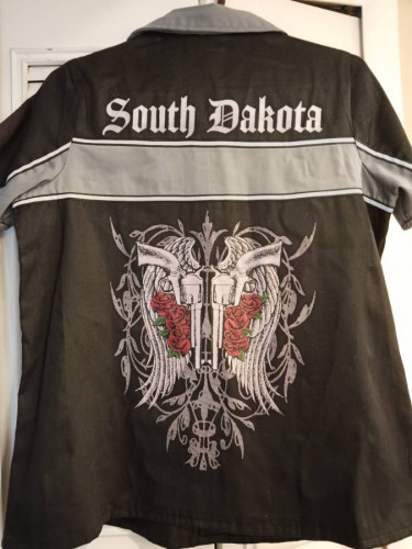 Brand new unisex shop biker shirt with reflective stripe and utility pocket never worn