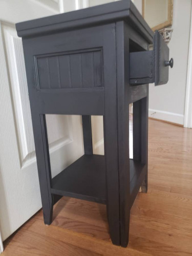 Small bedside/end table, black, solid wood with drawer measuring 14 x 16.5 x 28"H