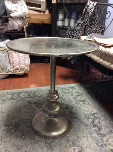 This cute silver painted metal side table is perfect for any living room and will add a little shine to any room! 19.5 x 19.5 x 22 $200 If this item interested you, come check out other items and many more at our shop My Big Finds. Located @ 129 Commerce Square Pl, Gaithersburg Maryland, 20878. Visit www...