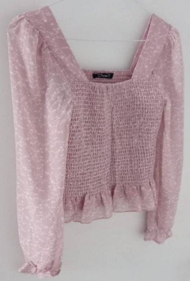 SIMPLEE CROPPED TOP BLOUSE WITH RUFFLE BOTTOM/CUFFS (size S)