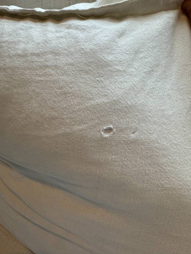 Six Penny Neva Sectional about 2 years old, in good condition, slipcovers have been cleaned regularly (1x a week) Note: there's a small hole in one of the back cushions, we usually flip it over so so it's not noticeable (see pic for details) Shown with throw blanket draped over (we use this to protect it ...
