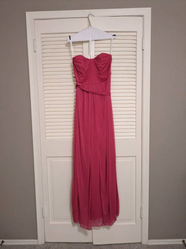 Size 14 Extra Long Tall David's Bridal Pink Fuchsia Bridesmaid Dress $65 Bought new for a wedding, special ordered with extra length (usually an upcharge) and it came to me super long so was able to hem it to the exact length I wanted. I'm 5'9" and wore 4 inch heels and it was hemmed to fit that. It is ...