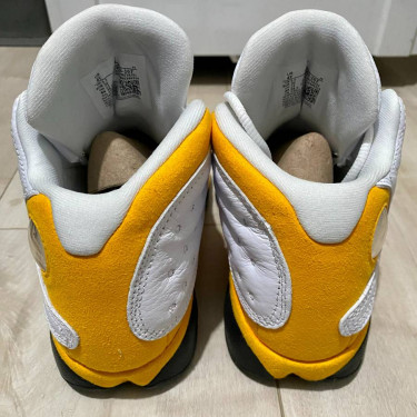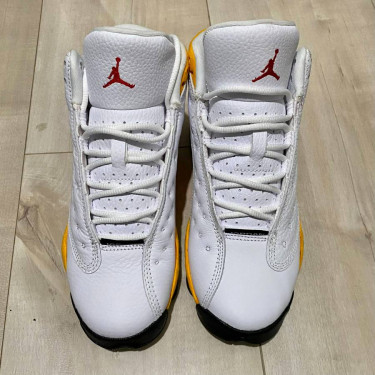 This pair of Air Jordan 13 Retro sneakers in the Del Sol white gold colorway is a must-have for any sneakerhead. The shoes are gently preowned and come in a size 4 youth, equivalent to a women's size 5.5 or a men's size 4. The mid-top sneakers feature a lace-up closure and standard width. The shoe...