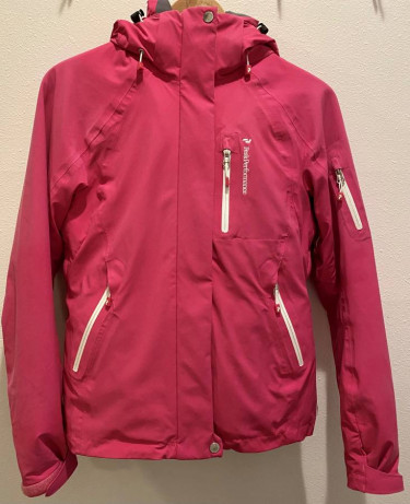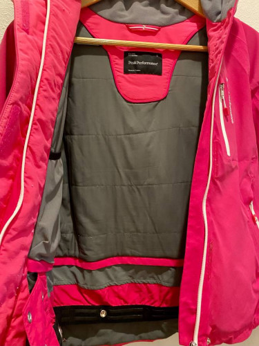 TOP QUALITY AND STYLISH SKI JACKET (PEAK PERFORMANCE) FOR WOMEN. SIZE: S (SMALL). THE JACKET IS WARM BUT NOT HEAVY. IT HAS MANY POCKETS INSIDE AND OUTSIDE, REMOVABLE HOOD, PIT ZIPS, POWDER SKIRT, SKI PASS POCKET ON THE ARM, INTERIOR SLEEVE WITH FINGER HOLE AND MANY MORE. THE INTERIOR OF THE COLLAR IS POLAR ...