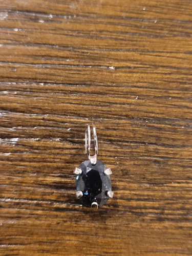Fresh Estate Find! Beautiful 10K White Gold solitaire slide pendant. Small but elegant. Stamped 10k. Includes a 5mm x 7mm (1 ct+) oval blue stone I believe to be a sapphire. Stone is a really pretty color under light. Approximately .3 gram total weight. Excellent-Like New Condition. Asking $100 obo. $12 Insur...