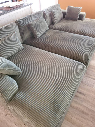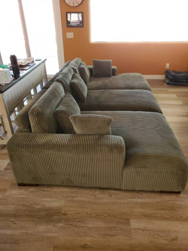 Brand new xl sofa.courdroy.green.took protective covers off for lay out and pictures .