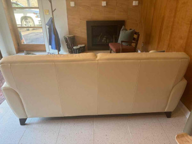 This leather ivory sofa is from Macys and is lightly used in excellent condition. The sofa is very comfortable and there is no damage. We are only selling because it does not fit in our new home. Dimensions are: 82''W x 36''D x 35''H Seat height: 20" Seat length between arms: 67" Seat Depth: 22" Macys descrip...