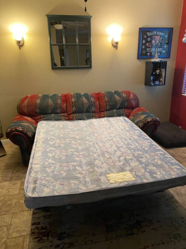 Hey All, Have a very nice Sofa-Sleeper with matching chair in southwestern cloth print. Primary colors are red & green. Sleeper is queen sized and includes the mattress & pillows. We also have a memory-foam mattress topper to go with it. Non-smoking home, in excellent shape. Feel free to contact ...
