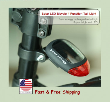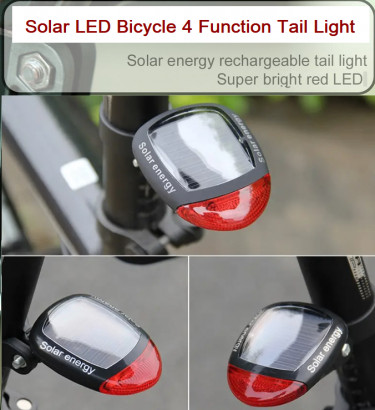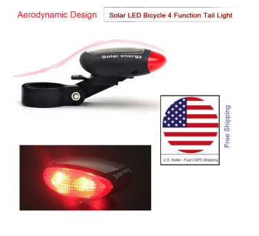 Solar Powered Bicycle Cycling Bike LED Waterproof Tail Light Lamp.