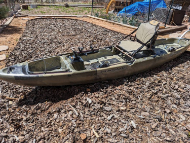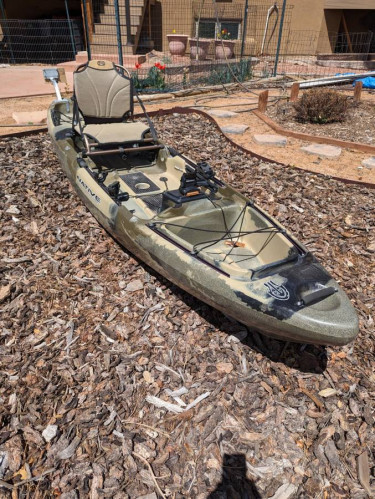 SOLD 12 foot Native Watercraft Slayer Kayak Includes: Humminbird 363 fishfinder with GPS lithium ion battery for the fish finder Paddle holder Scotty rod holder and two mounts Camo color scheme makes it good for fishing and hunting Big, comfy seat Has a motor mount installed if ...