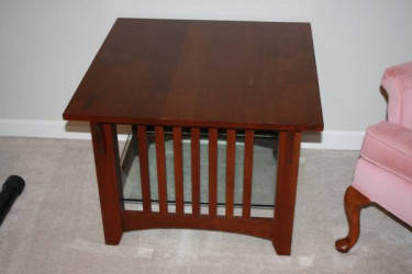 USED Mission Arts and Crafts Modern Side Table - Solid Cherry - Crawford Furniture Jamestown, NY There is a heavy glass shelf that rests on the lower level of the table. It is not original to it but will be included in the sale unless you do not want it. The top measures 27” x 27” and the table is 21” high. ...