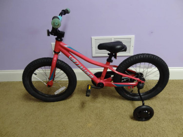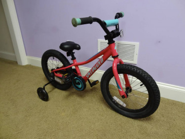 Specialized Riprock Girl’s Bike with 16” wheels, coaster brakes and quick removal training wheels. This bike is only a few years old and is the exact same model currently sold on the Specialized website. Pink with Turquoise accents. This bike is in excellent condition with only a few minor scratches and sc...