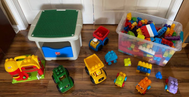 Step 2 building Table with HUGE assortment of mega blocks; farm/vehicles (clear tote bin not included. Will transfer blocks to a bag for pickup) $100 firm for entire lot (Separately $50 for table, $50 for blocks, vehicles, farm) Clean, smoke free Perfect if you would like to decrease electronics and...