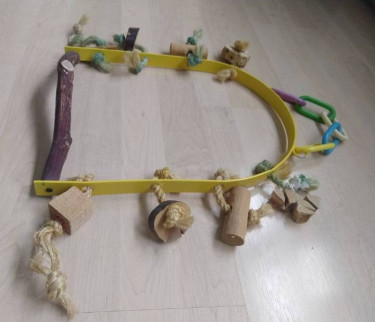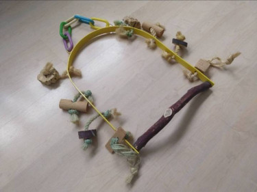 Sunshine Large Metal Arched Bird Perch with Toys (originally $65.99) Great quality, cannot find these anywhere anymore and it's super artistic! Add branches and tie to the middle for extra fun and dexterity for your feathered family fun and exercise! Large yellow sunshine color metal arch swing with...