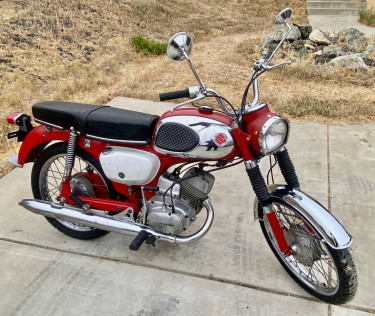 The B100P or “Magnum” as it was known in the US. It was first introduced in 1966. The model was fairly typical of Suzuki’s lightweight production bikes utilizing a pressed steel spine frame equipped with swing arm rear suspension and telescopic forks. The single cylinder two stroke engine was fitted with S...