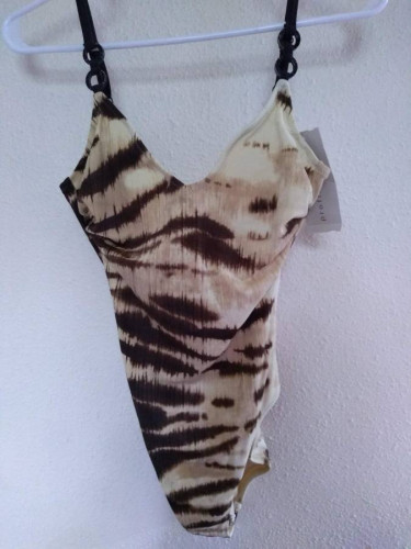New designer swimsuit size S $50 , Brown/white overup size L $10 , white one size S $10 , pink/black top New $20