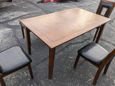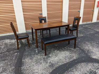 Wood Table 5' by 3' by 30"/High , one bench seat 3 people and 3 chairs. We can deliver for a little bit extra. Tambien hablo español. Call or text 4o7_879/oo2seven.