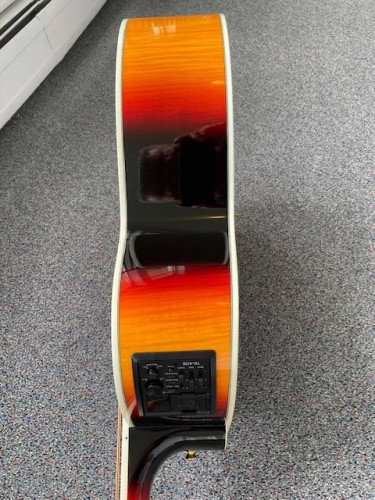This is a like new Takamine GB720CE- BSB (black sunburst) with Gator Case. This elegant acoustic-electric Jumbo bass is a real workhorse. Its built-in Takamine TK-40B preamp system boasts a tuner, 3-band EQ, gain control and more. With its mighty jumbo body style, solid-top construction, stunning cosme...