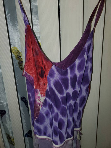 Made In Italy 100% Viscose Dressy Colorful Reversible, front or back, Tank style Spaghetti strap blouse Liner sewn 🪡🧵in. $15 Multi color: in this "1 "top: 🟣⚪️🟤🔴 Purples, white, Browns Easily worn dressed up or with Denim/Jeans👖. ______________________ All other tanks $8.00 each: 95...