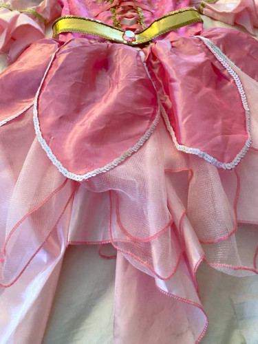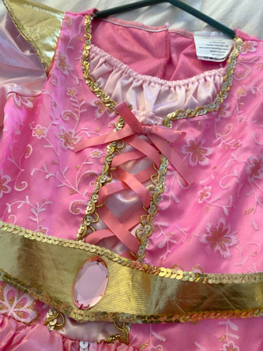 TeeTot & Co. Pink Pixie Fairy Costume Dress Child Size 5-8 Dress WITH Wings Adorable Pink and Gold Fairy Costume / Dress - great condition, worn only a few times before outgrowing. Comes with pink wings with gold trim as well. Made by TeeTot & Co this size 5-8 dress slips on and has a velcro clo...