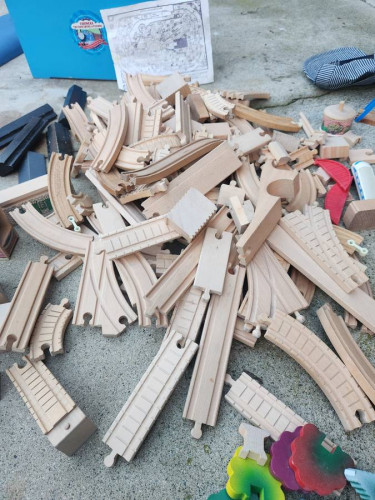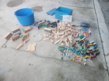 Substantial track and train sets. Comes with both bucket and bench for storage.