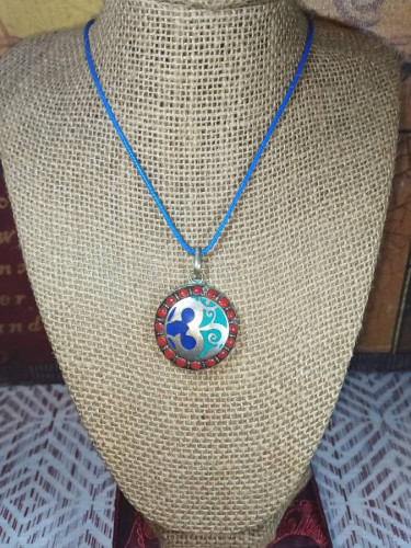 Sterling Tibetan Pendant - Handcrafted in Napal $40 Call or text me to pick it up I will ship USPS New with Vintage Feel! Never Used Inlayed with beautiful stones/crystals Turquoise - teal blue Lapis Lazuli - bright blue Red Coral - bright red Om Symbol inlaid w Sterling Silver Pendant has...