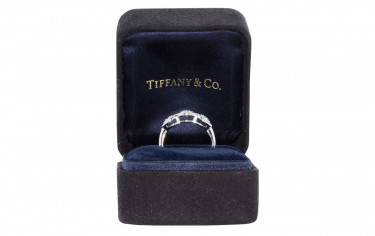See link at the bottom of the ad to view the ring on the Tiffany website. Currently a size 4.5, but Tiffany Co. will resize (up or down) for $90 (feel free to double check that - that's what they charged me a few years ago.) This sale includes the ring, the original Tiffany box, and a small Tiffany bag fro...