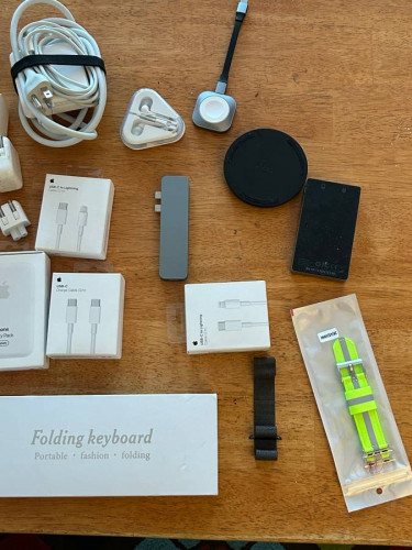 Selling tons of Apple product assessors. See list below and make an honest offer. I'm helping with an Estate Sale and trying to get proceeds for my mother-in-law. Most items are either new in sealed box, or very slightly used. Note the Apple watch! USB-C to Lightning Cable (2 m) MQGH2AM/A New Apple - MagS...