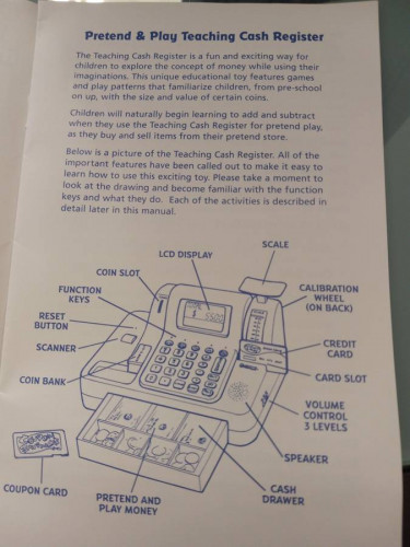 We are selling a toy cash register, Learning resources brand. It comes with tons of play money and coins. It has a keypad, digital display, voice and sounds, and a built in scale. It is in like new condition. It comes from a smoke free and pet free home. We are asking $30. CASH ONLY. LOCAL PICKUP ONLY. I...