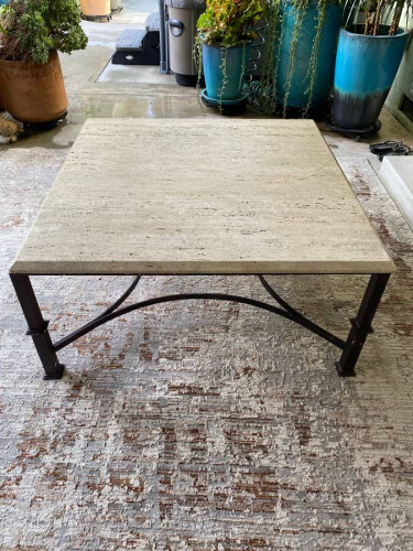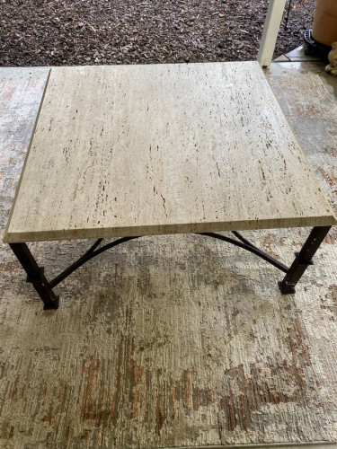 Well enjoyed beautiful stone with heavy metal base. Like item at Pottery Barn sells for $420. Will require at least two people to move the stone.
