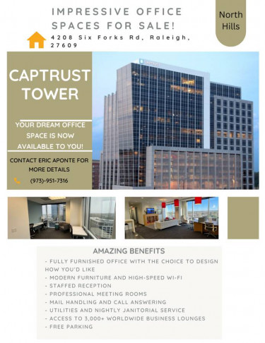 Are you looking for an office that's located in a professional business hub, where 24/7 access to individuals and businesses can grow and network with other businesses? Here at Cap Trust Tower, we've got exactly what you're looking for and more! We have private offices, co-working desks, and even team spaces ...