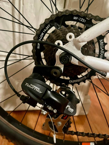 Trek 820 21-speed teen/women’s S (16”frame) mountain bike in excellent to like new condition. Steel 16” (M) frame, good for riders approximately 5’2” to 5’6” in height Color: white, teal blue and silver 26” wheels with like new Bontrager LT3 26”x2.0” tires Bontrager comfort saddle 21-speed (3x7...
