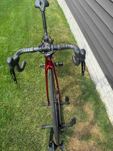 2024 Trek Emonda SL DI2 size: 54cm with disc breaks. Garmin power peddles not included in this.