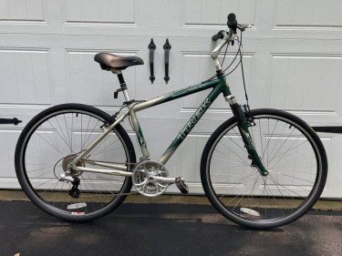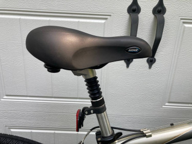 This super nice 21 speed Trek 7200 is tuned up and in like new condition. The lightweight aluminum large frame size is 18in./46cm. fitting riders 5'6"-5'10" in height. This bicycle has an aluminum suspension seat post, wide comfortable saddle, lightweight aluminum 700c wheels both being quick release, an alum...