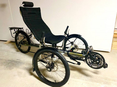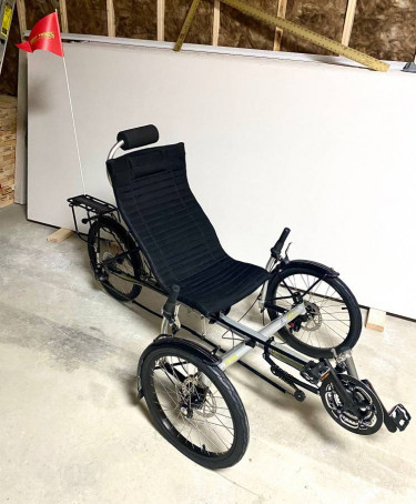 We recently retired and closed our bicycle shop. This is the last new recumbent trike that we had in stock. It is made by Trident Trikes in North Carolina. It is a Spike 2 model. It folds, has 24 speeds, fender and rear rack, and headrest option along with a chain tensioner so that riders who are taller or sh...