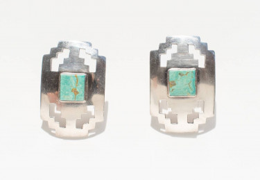 Turquoise Sterling Silver Vintage Earrings. No artist's signature, but it does have sterling silver stamped on the back. 1.5/8' tall and 1 inch wide.