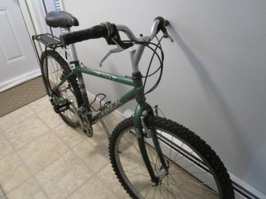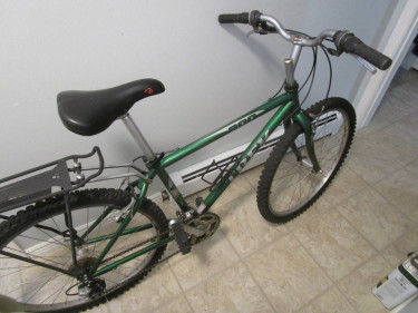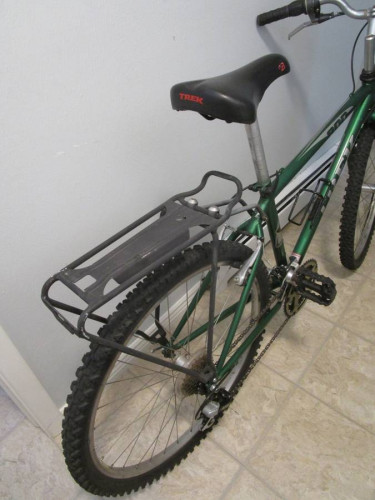 Used Trek 800 Sport Mtn Bike $200 cash, you must pick up Adult bicycle frame size: 16" Chrom-moly Steel frame and fork. (This frame will fit a person 5' 6", give or take a few inches) This bicycle has been Safety checked and ready to ride. Comes with water bottle cage and rear rack already mounted...